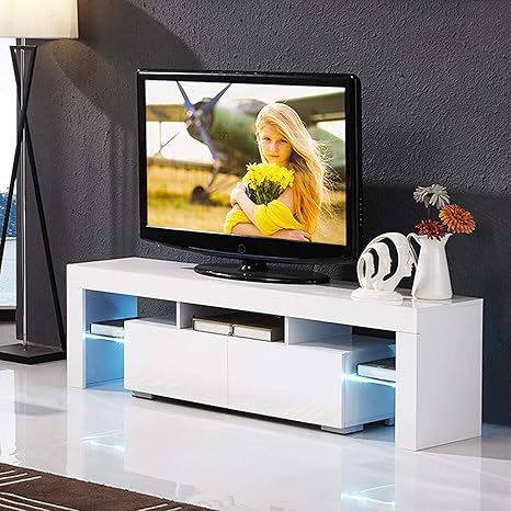 Mecor Modern White Tv Stand With Led Lights High Gloss Tv Stand For 65 Inch Tv Led Tv Stand With Storage And 2 Drawers Living Room Furniture